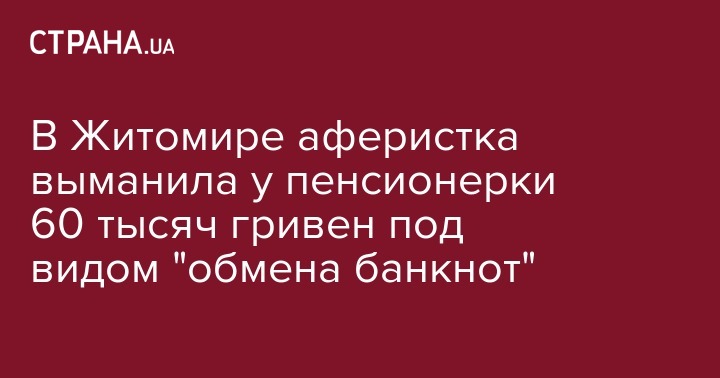 В Житомире аферистка выманила у пенсионерки 60 тысяч гривен под видом "обмена банкнот"