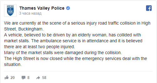 В результате инцидента многие торговые палатки повреждены, добавляет полиция долины Темзы в Facebook.