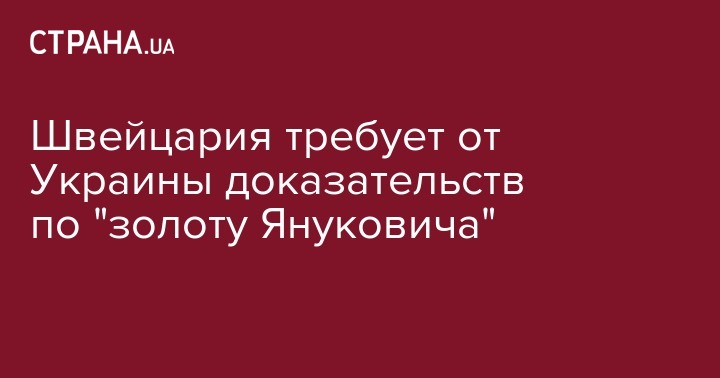 Швейцария требует от Украины доказательств незаконного происхождения "золота Януковича", которое было якобы украдено и вывезено из Украины окружением экс-президента, для их передачи. Об этом сообщает ТСН со ссылкой на федеральный департамент иностранных дел Швейцарии.