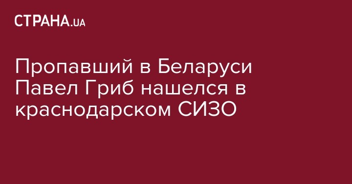 Пропавший в Беларуси Павел Гриб нашелся в краснодарском СИЗО