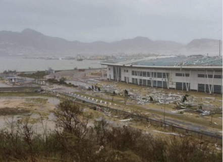 Ураганный ветер сильно повредил крышу аэропорта и взлетно-посадочную полосу. Также стихия вызвала серьезный ущерб внутри главного терминала.