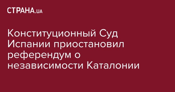 Конституционный суд Испании, приняв к рассмотрению иски правительства страны о незаконности принятых накануне парламентом и правительством Каталонии документов о референдуме в Каталонии, приостановил их действие. Об этом пишут "РИА Новости".