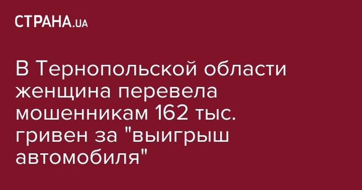 В Тернопольской области женщина перевела мошенникам 162 тыс. гривен за "выигрыш автомобиля"