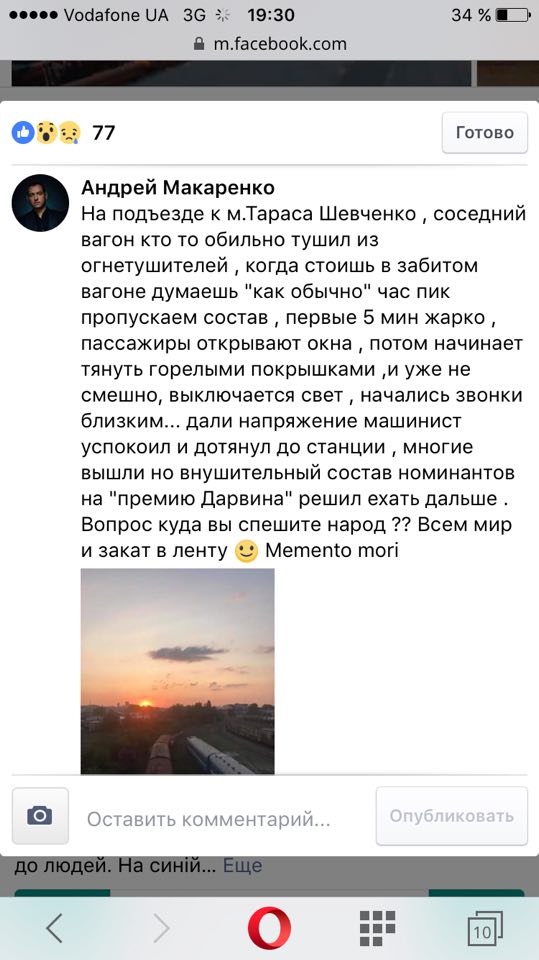 20:03 "Это жесть! Ехала с Олимпийской к Льва Толстого 25 мин, 20 мин - стояли на перегоне. "Пользуйтесь другими видами транспорта. По техническим причинам движение электропоездов ограничено", - объявляют в метро. Пассажиры немного паникуют. От Майдана до Теремков поезда не ездят !!! По направлению к Героев Днепра едут только до Майдана !!!", - пишет в Facebook журналистка Ольга Омельянчук.