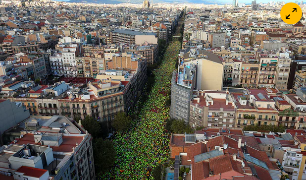 В Барселоне несколько сотен тысяч каталонцев (по другим данным миллион) вышли на демонстрацию на улицы города в знак поддержки референдума о независимости этого региона от Испании, передает BBC.