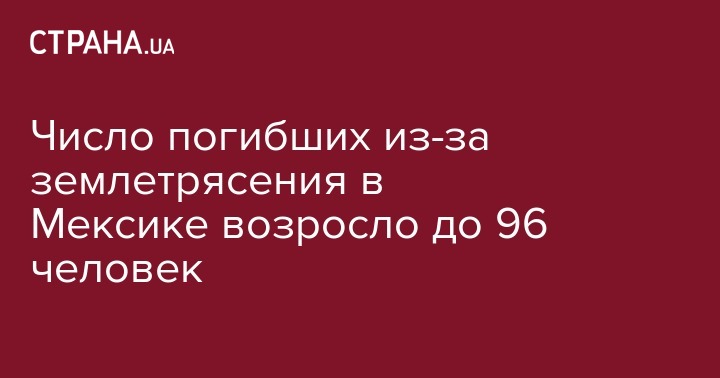 Число погибших в результате землетрясения, которое произошло на прошлой неделе вблизи берегов Мексики выросло до 96 человек, передает агентство Associated Press.