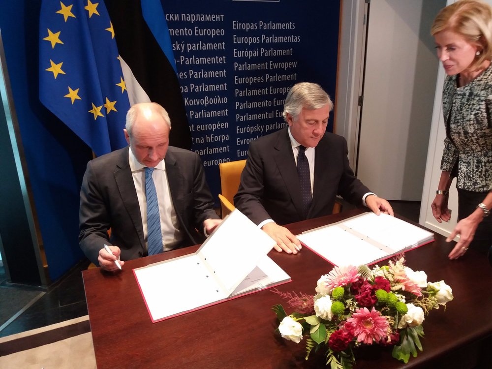 Документ подписали президент Европейского парламента Антонио Таяни и заместитель министра по вопросам дел Евросоюза председательствующей в ЕС Эстонии Матти Маасикас.