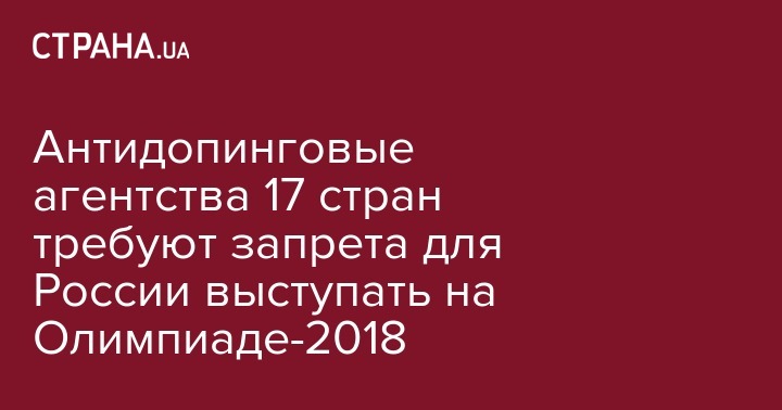 Национальные антидопинговые агентства 17 стран выступили за отстранении сборной России от соревнований на Олимпийских играх 2018 года в Пхенчхане. При этом они не возражают против участия в ОИ отдельных российских атлетов под нейтральным флагом. Об этом сообщает The Guardian.