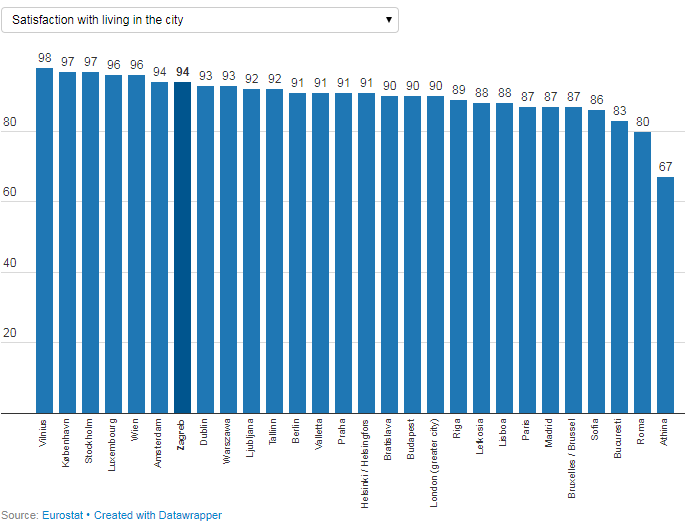 Как передает британская газета Independent такое исследование провело статистическое агентство Eurostat. Отбор происходил по ряду критериев: число довольных жизнью в городе, комфорту в общественных местах, качеству здравоохранения, состоянию экологии и качеству образования.