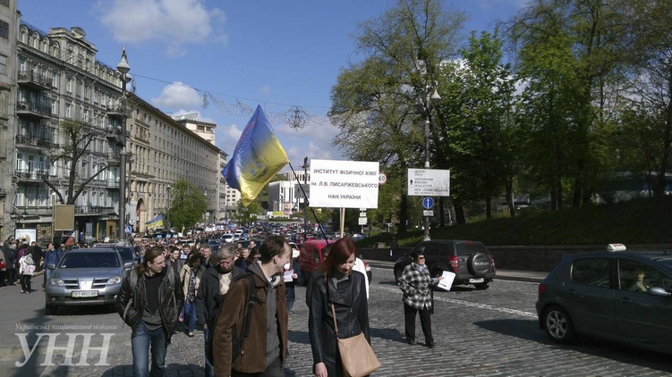 В центральной части Киева во вторник, 19 апреля, утром возникли пробки из-за проходящего марша ученых. Об этом сообщает "УНН".