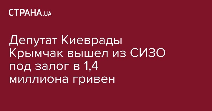 Депутат Киевского городского совета Сергей Крымчак от фракции "Єдність" внес залог в сумме 1,4 миллионов гривен и вышел из СИЗО. Об этом сообщил его адвокат Игорь Черезов, передают "Украинские Новости"