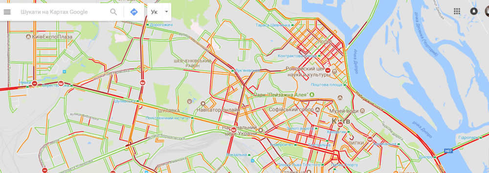 - пробки практически во всем центре города. Это улицы в районе станций метро "Золотые Ворота", "Университет", "Театральная", "Крещатик", "Майдан", "Площадь Льва Толстого", "Дворец спорта", "Лукьяновская".