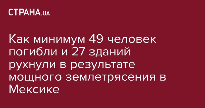 Как минимум 49 человек погибли и 27 зданий рухнули в результате мощного землетрясения в Мексике