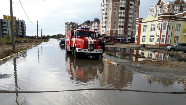 Подтопление проезжей части дороги и придомовых территорий жилых домов на улице Бориса Гмыри возникло в связи со значительными осадками.