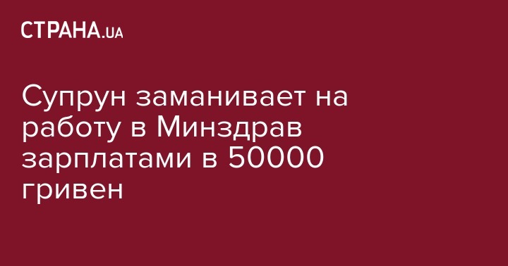 И.о. министра здравоохранения Ульяна Супрун объявила о вакансиях в Министерстве здравоохранения на должность руководителей директоратов ведомства. При этом предлагается зарплата от 50 070 грн. Об этом она написала в Facebook.
