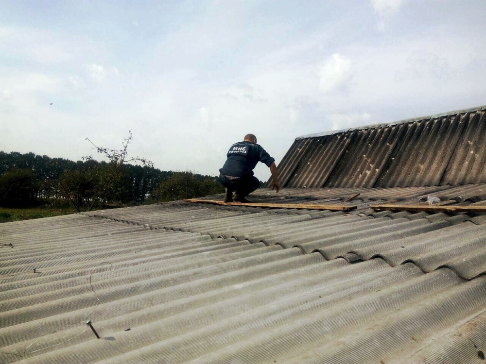 В городе уже начаты аварийно-спасательные работы по перекрытию поврежденных кровель листами шифера.