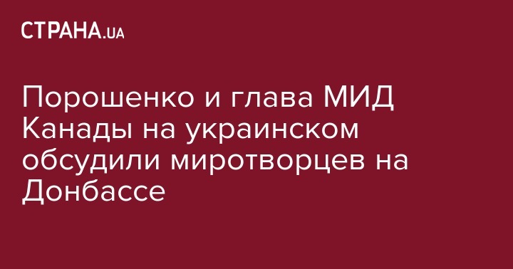 Президент Петр Порошенко обсудил с министром иностранных дел Канады Христей Фриланд подходы по вводу миротворцев ООН на Донбасс. Об этом сообщает пресс-служба президента.