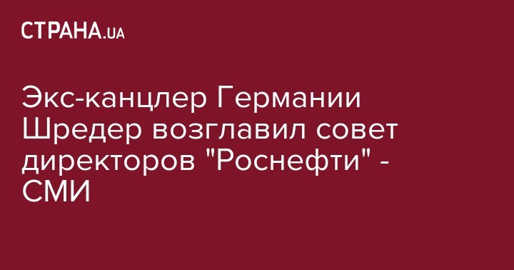 Экс-канцлер Германии Шредер возглавил совет директоров "Роснефти" - СМИ