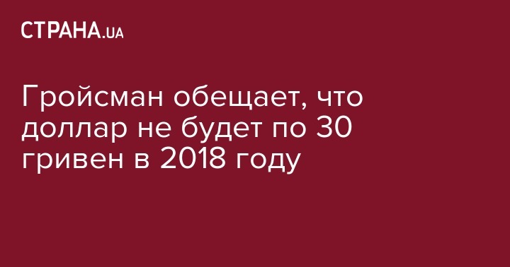 Премьер-министр Владимир Гройсман заявил, что говорить о поднятии курса доллара до 30 гривен нет оснований. Об этом сообщает "Укринформ".