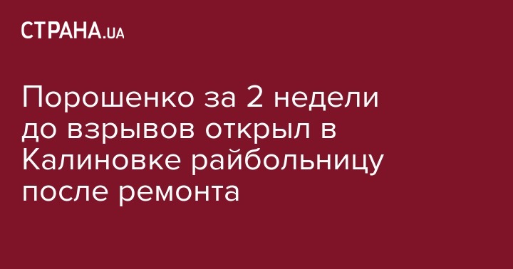 Буквально за 2 недели до взрывов арсенала №48, президент Петр Порошенко открыл в Калиновке, которая оказалась ближе всего к взрывам, отремонтированный корпус центральной районной больницы. Об этом сообщало Depo.Винница.