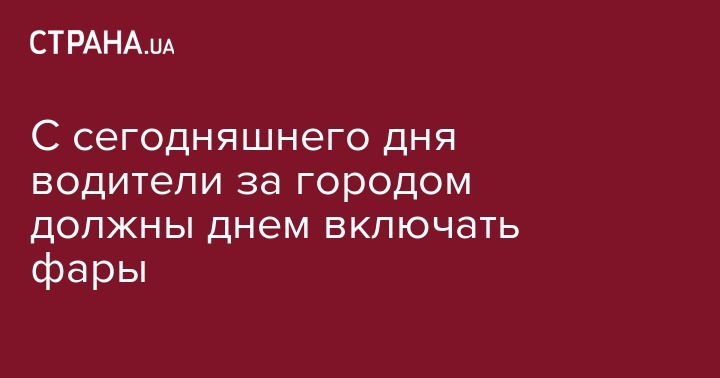 В Украине  водители с 1 октября по 1 мая вне населенных пунктов должны включать дневные ходовые огни, а в случае их отсутствия в конструкции транспортного средства ближний свет фар. Об этом говорится в сообщении Управления безопасности дорожного движения.