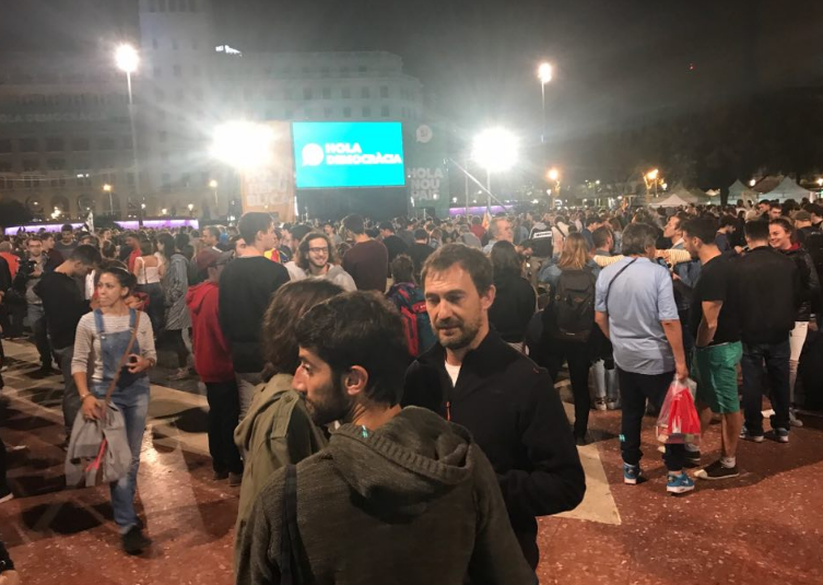 Как сообщает корреспондент "Страны", люди ожидают результата голосования на площади в Барселоне.
