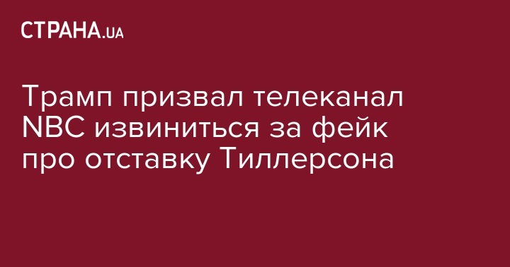 Президент США Дональд Трамп заявил, что американский телеканал "Эн-Би-Си Ньюс" (NBC) должен принести публичные извинения за информацию о том, что "госсекретарь США Рекс Тиллерсон якобы хотел покинуть свой пост, а вице-президент Майк Пенс отговорил его от этого шага". Об этом Трамп заявил в своем Твиттер.