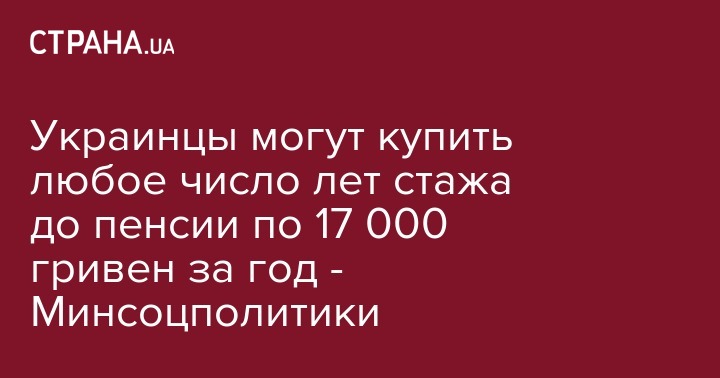 Украинцы могут купить любое число лет стажа до пенсии по 17 000 гривен за год - Минсоцполитики
