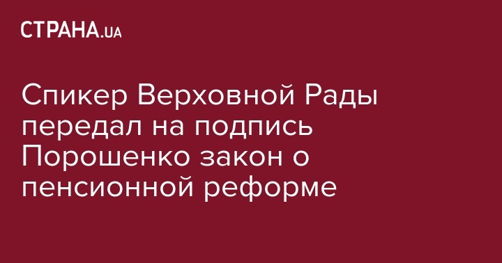 Спикер Верховной Рады передал на подпись Порошенко закон о пенсионной реформе