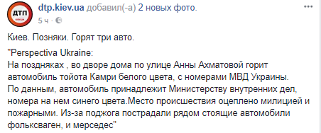 Ночью на Позняках сгорела Toyota с номерами МВД