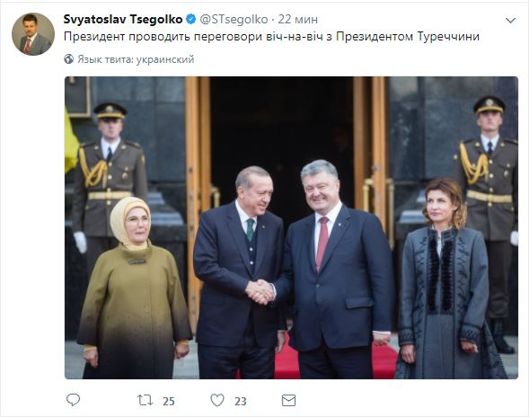 Об этом сообщил пресс-секретарь главы украинского государства Святослав Цеголко в Twitter.