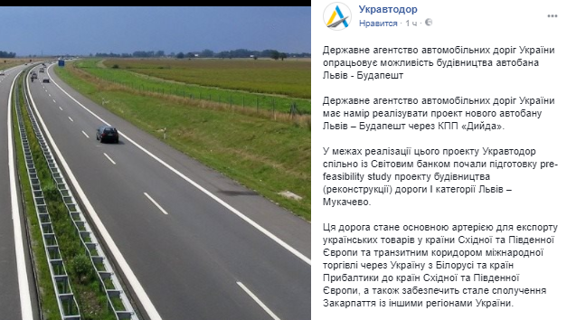 Госагентство автомобильных дорог Украины планирует построить автобан Львов-Будапешт (Венгрия). Об этом сообщает пресс-служба "Укравтодора".