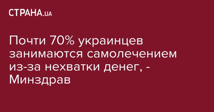 По ее словам, согласно исследованию 69% украинцев занимаются самолечением из-за нехватки средств.