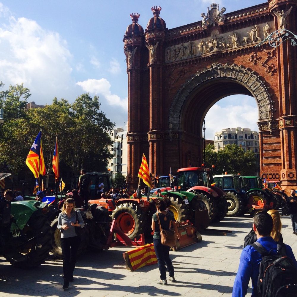 17:30 Фермеры пригнали сельхозтехнику под парламент Каталонии в защиту сепаратистов.