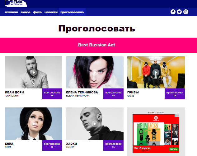 Украинские музыканты Иван Дорн и группа "Грибы" в этом году номинированы на премию MTV Europe Music Awards в категории Best Russian Act. Об этом говорится на сайте премии в разделе голосования.