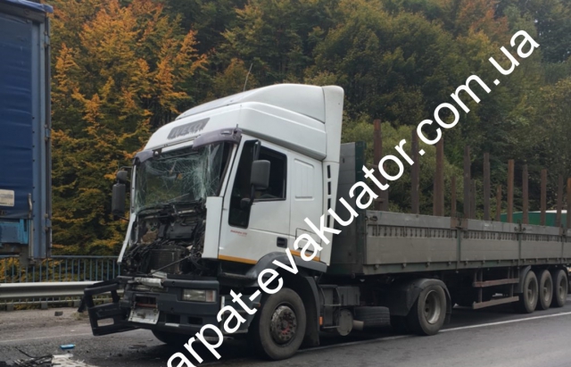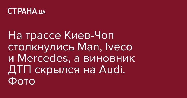 На трассе Киев-Чоп столкнулись Man, Iveco и Mercedes, а виновник ДТП скрылся на Audi. Фото