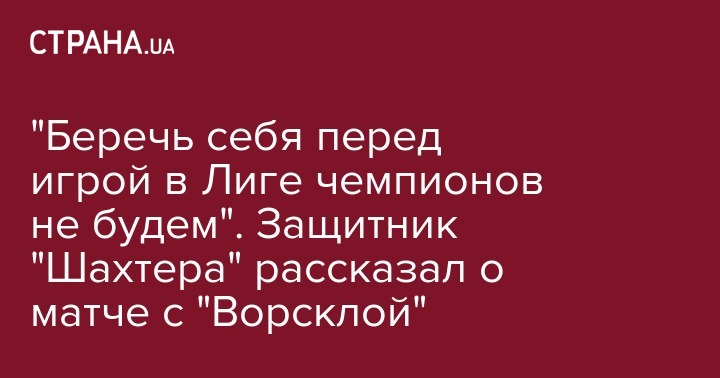 Защитник сборной Украины и донецкого "Шахтера" перед центральным матчем 12 тура УПЛ, который горняки 13 октября проведут с "Ворсклой" заявил, что команда не будет себя беречь перед важным поединком Лиги чемпионов против "Фейенорда".