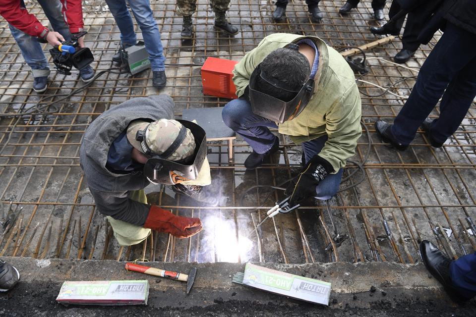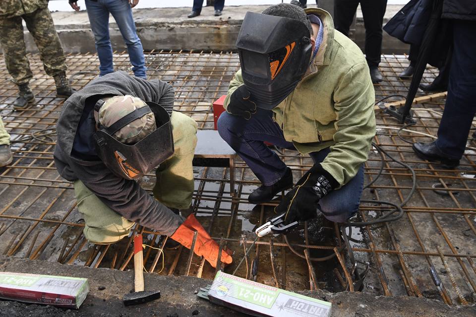 "В новом мосту будет и частица моего труда – вспомнил юношеский заводской опыт и один из швов мостовой конструкции сварил сам – под пристальным наблюдением, конечно". Однако не обошлось и без курьезов - в то время, как Гройсман решил помочь сварщику, у него "залип" электрод.