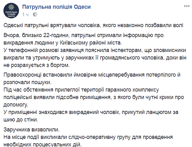 Ночью в полицию позвонила женщина и сообщила, что бандиты похитили и удерживают в заложниках ее гражданского мужа. От похищенного требовали рассчитаться по долгам.