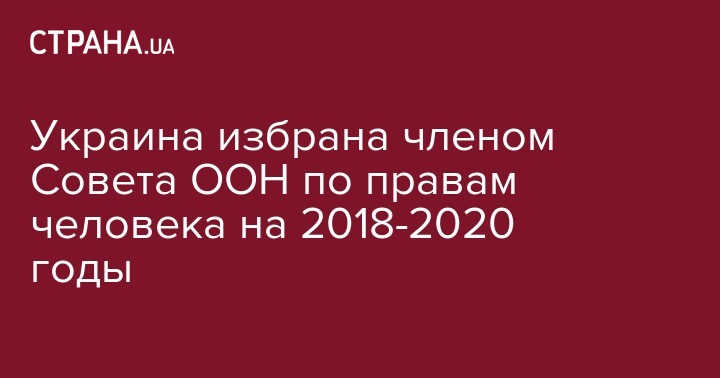 Украина избрана членом Совета Организации Объединенных Наций (ООН) по правам человека на 2018-2020 годы. Об этом говорится в сообщении постоянного представительства Украины при ООН в микроблоге Twitter.