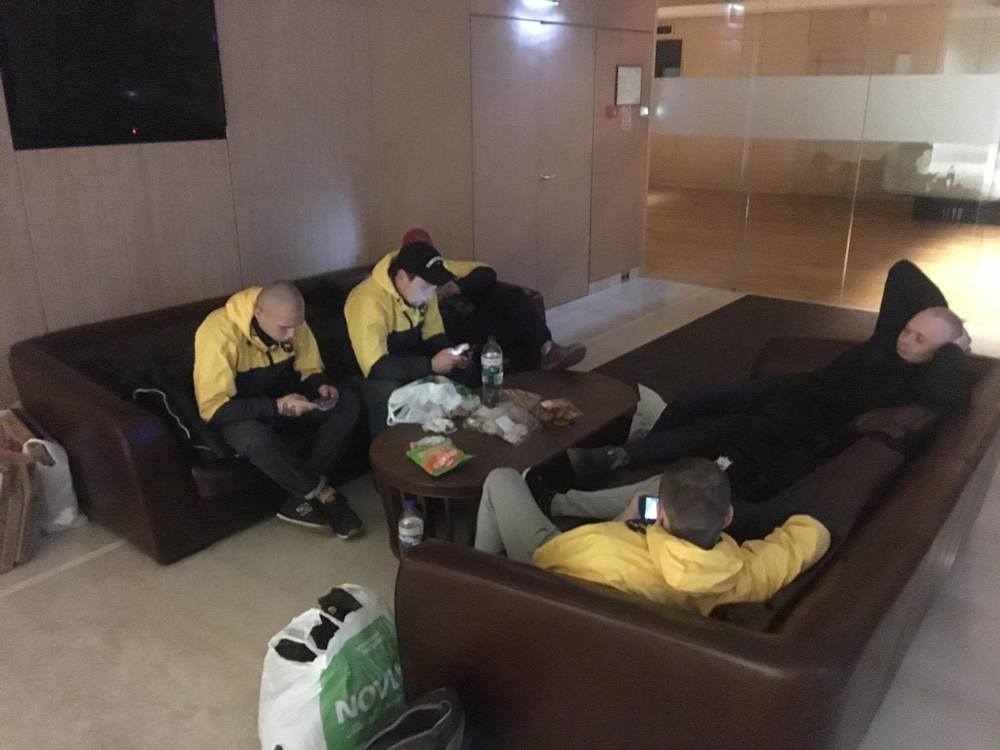 "Сейчас здесь находится около 30 человек, раньше было около 250. Здесь эти люди и будут ночевать. Наше требование - вернуть в собственность киевского горисполкома это здание, которое раньше принадлежало семье Януковича, а сейчас находится под арестом прокуратуры с 2016 года. Мы хотим актуализировать этот вопрос, поскольку в этом здании сдаются офисы и так далее, несмотря на то, что оно находится под арестом", - заявил "Стране" член высшего совета "Национального корпуса" Родион Кудряшов.