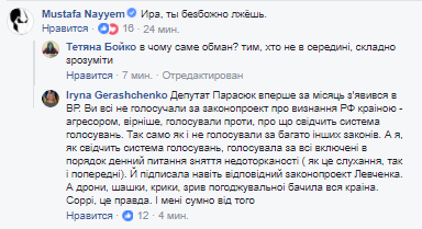 Его позицию поддержал также нардеп Мустафа Найем, обвинив Геращенко во лжи.