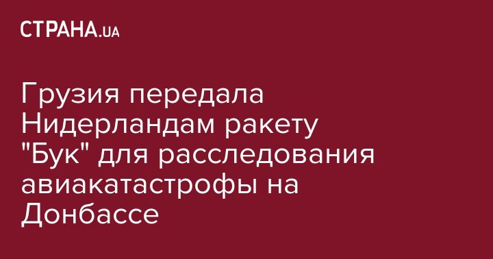 Грузия передала Нидерландам ракету "Бук", необходимую для расследования авиакатастрофы MH17 в небе над Донбассом, по которой Нидерланды уже начали судебную процедуру. Об этом сообщает RTL Nieuws.