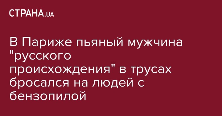 В Париже минувшей ночью задержали нетрезвого мужчину "русского происхождения" в трусах с бензопилой. Об этом сообщает газета Parisien.
