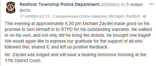 В городе Редфорд (штат Мичиган) американец Майкл Зайдел постоянно троллил полицию в Facebook. У полиции был ордер на арест Зайдела за два преступления: его обвинили в попытке нападения на человека и нетрезвом вождении.