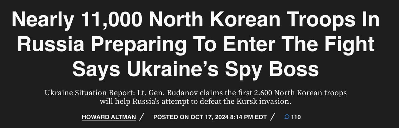 Ранее глава ГУР Буданов заявил, что подготовлены будут 11 тыс. солдат КНДР. НАТО пока этого не подтверждает.