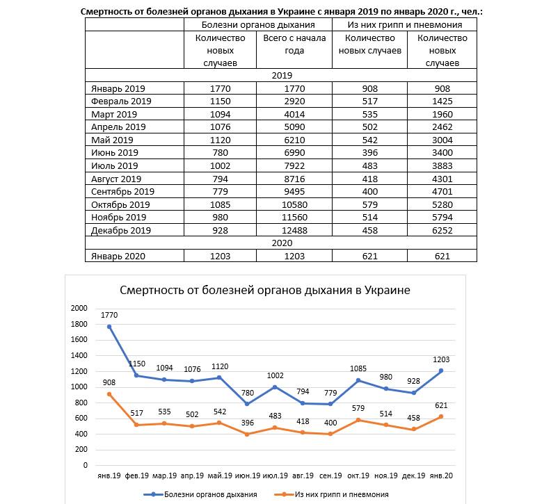 Состоянием на январь 2020 года говорить о том, что в Украине скрывается реальная статистика смертности от короновируса было необоснованно. Смертность от респираторных заболеваний даже на треть ниже нежели в 2019-м году (вся информация официальная от МОЗ). Это ещё раз подтверждает, что COVID-19 в Украину завезли в феврале-марте преимущественно из Европы.