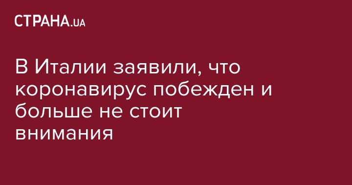 Наконец-то! Неужели развязка наступила с этим коронавирусом? Вот мне попалось сообщение доктора Альберто Зангрильо, главы отделения интенсивной терапии в больници Сан-Раффаэле в Милане. Он заявил, что Италия победила коронавирус, и «нецелесообразно в дальнейшем акцентировать на нем внимание».