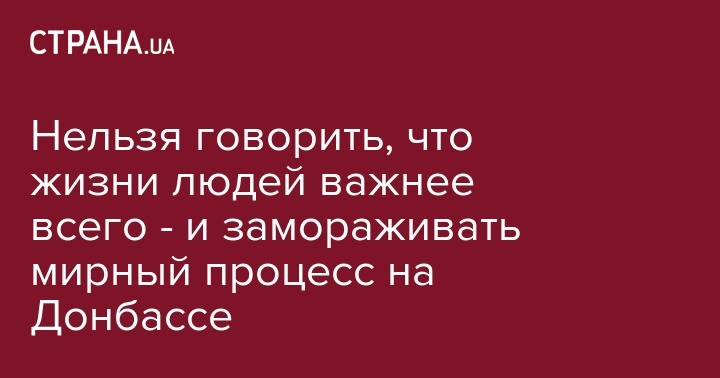 Нельзя говорить о том, что для тебя жизни людей важнее всего и при этом замораживать мирный процесс на Донбассе.