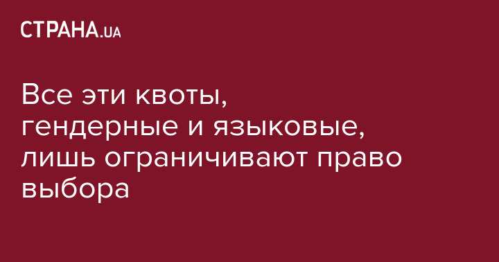 Партии забавно обошли гендерную квоту - ставили в пятерки безработных и студенток. По крайней мере на моем участке. Так что ваши квоты, гендерные и языковые, лишь ограничивают право выбора. И напоминают совок.